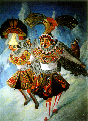 Las sociedades andinas han guardado un legado milenario con las aves. Ellas son sus mensajeros ancestrales y para mejor inter-relacionarse con las aves, se visten con sus plumajes para asi llegar a comunicarse con el mundo del más allá.